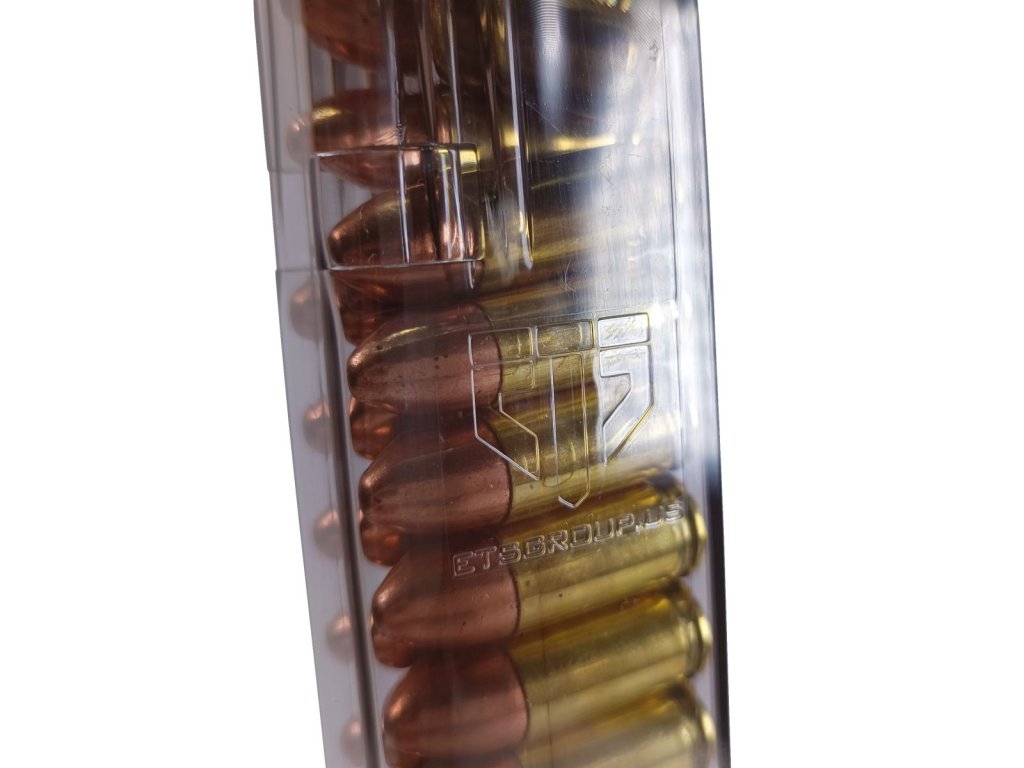 Zásobník je možné rychle plnit pomocí nabíjecí pomůcky ETS C.A.M. pro pistolové zásobníky 9mm/40.