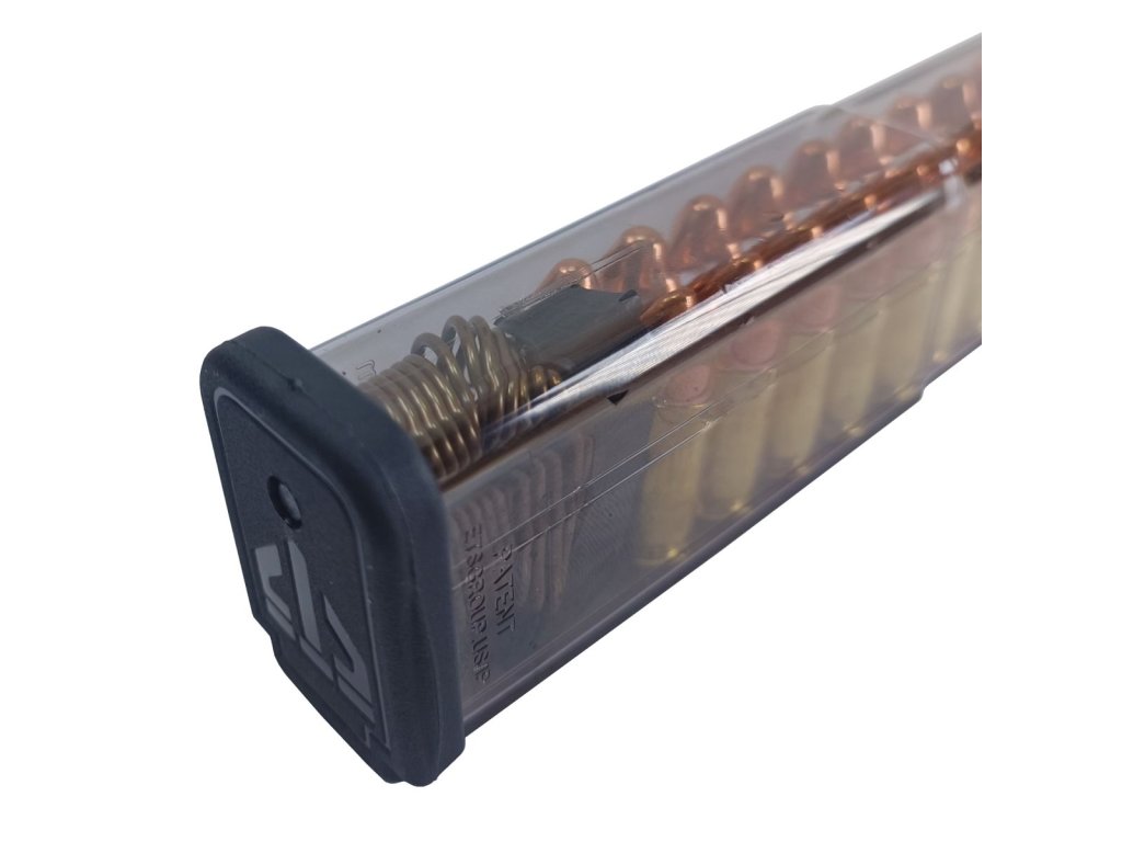 Univerzální zásobník pro pistole Glock 17, 18, 19, 19x, 26, 34 a 45 (Gen. 1 - 5) v ráži 9 mm Luger (9 × 19 mm).
