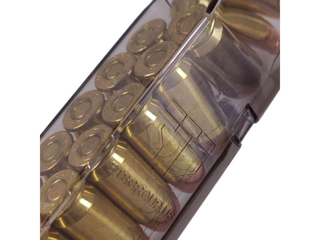 Zásobník je možné rychle plnit pomocí nabíjecí pomůcky ETS C.A.M. pro pistolové zásobníky 45 Auto.