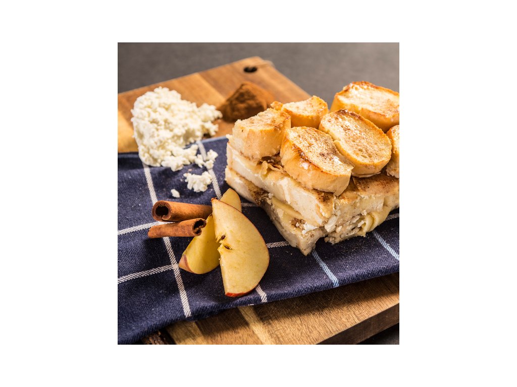 Složení: Veka (25%) (mouka pšeničná, voda, olej řepkový, droždí, sůl, cukr), jablka (22%), mléko, tvaroh, cukr řepný, vejce, máslo, sůl,skořice (0,01%).