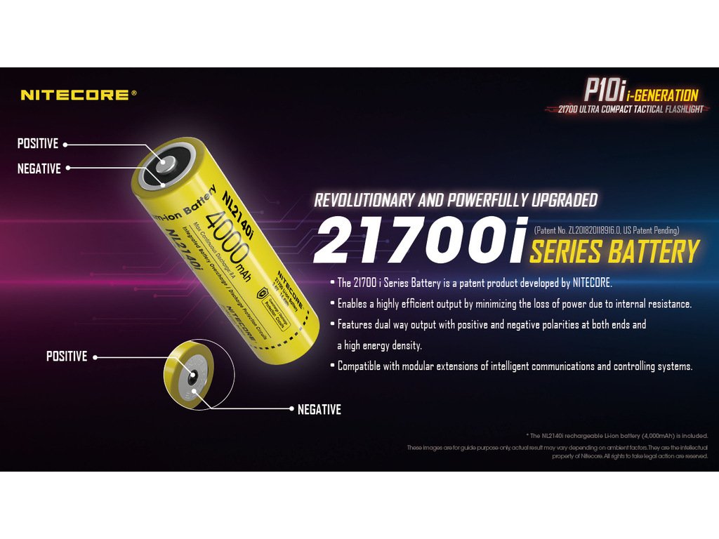 Akumulátor NL2140i (4000 mAh) je součástí balení. Svítilna je kompatibilní pouze s aku 21700i