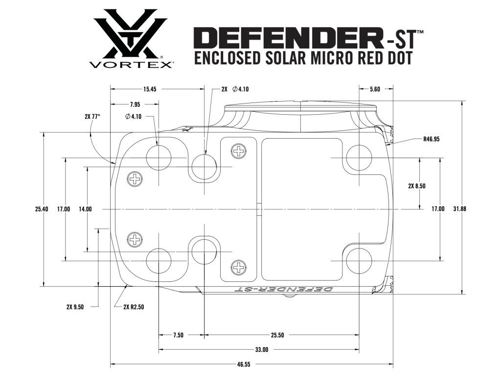 Kolimátor Defender‑ST™ Enclosed Solar Micro Red Dot nabízí tři varianty záměrné osnovy a 12 úrovní jasu (10 pro denní světlo, 2 pro noční vidění), což umožňuje rychlé přizpůsobení různým střeleckým situacím a světelným podmínkám.